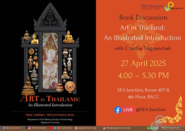 On 27 April 2025 at 4pm, SEA Junction partnering with John F. Kennedy (JFK) Foundation of Thailand will host a discussion of the book “Art in Thailand: An Illustrated Introduction”, written by art lecturer Chedha Tingsanchali. This handbook for understanding Thai art from the 5th-20th centuries is an attempt to document for a general public the whole timeline and tendencies of art history in Thailand from the beginning of civilization to the early 20ᵗʰ century CE