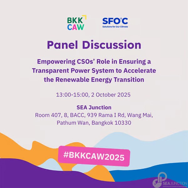 Lack of transparency in power systems remains a critical barrier to scaling up renewable energy and ensuring a fair transition. This panel, hosted by Solutions For Our Climate (SFOC), will convene CSOs from across Asia to highlight the importance of transparency in power systems and explore practical steps to advance fairness and accountability in the energy transition.