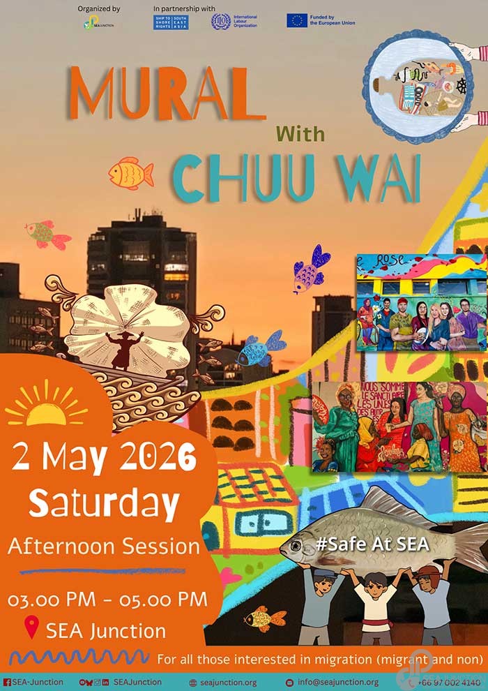 The mural project is organized by SEA Junction in partnership with the Ship to Shore Rights South East Asia and ILO funded by the European Union.