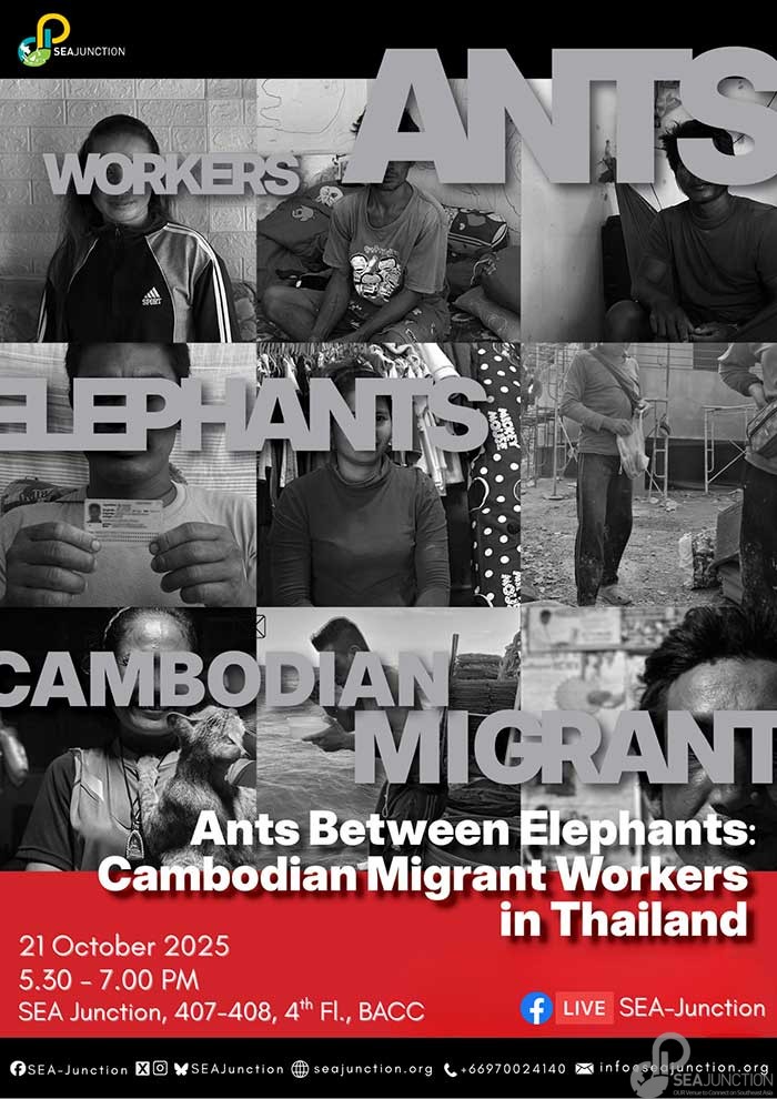 To address these intertwining challenges, SEA Junction is launching an initiative to promote alternative narratives on migrant workers in Thailand, countering stereotypes and one-dimensional portrayals while fostering open dialogue and public support for the integration of migrants into Thai society. The first event in this series is the panel titled “Ants Between Elephants: Cambodian Migrant Workers in Thailand” which will highlight the voices of different stakeholders from employers to migrant workers in an open dialogue, along with a Q&A session from participants.