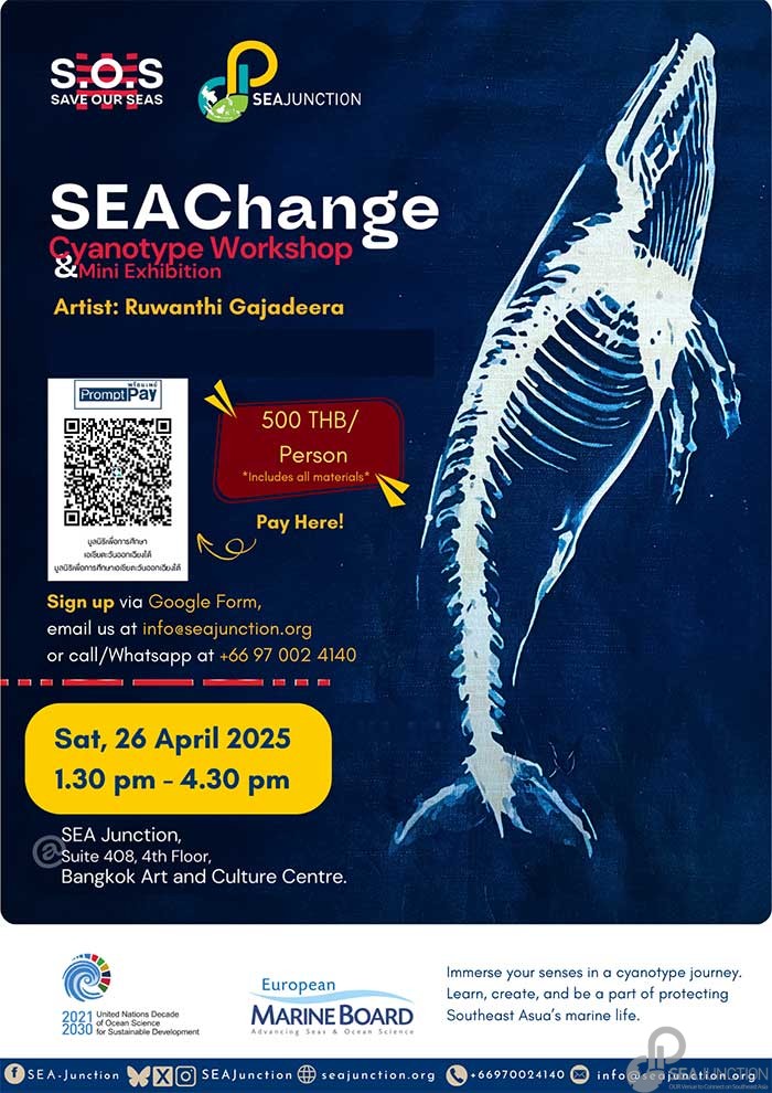 The workshop fee is 500 THB/person and it includes materials and guided immersive experience. For reservation, please contact SEA Junction via email at info@seajunction.org or phone/WhatsApp: +66970024140. Or, sign up here: https://docs.google.com/forms/d/e/1FAIpQLSeO9xYbk1-0bQEoOBT3w5AssY5DtN8_Tux0yB3S_ge6HIMDQw/viewform