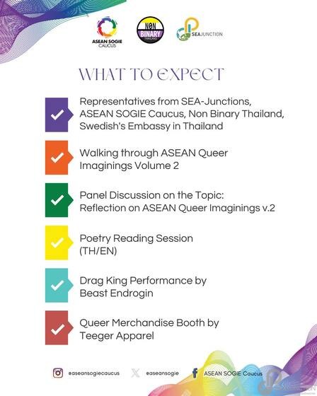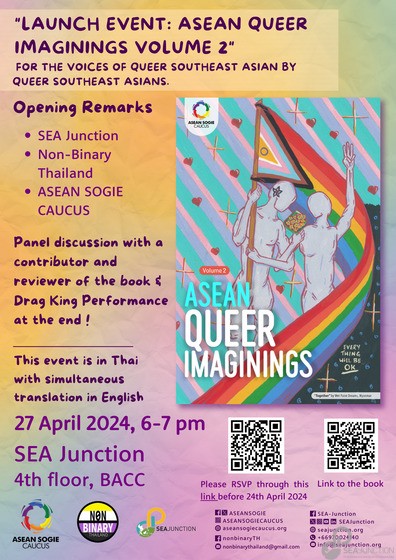 On 27 April 2024, 6-7 pm, ASEAN SOGIE CAUCUS, in collaboration with Non-Binary Thailand and SEA Junction, held the “Launch of ASEAN Queer Imaginings Volume 2” at SEA Junction, 4th floor, BACC